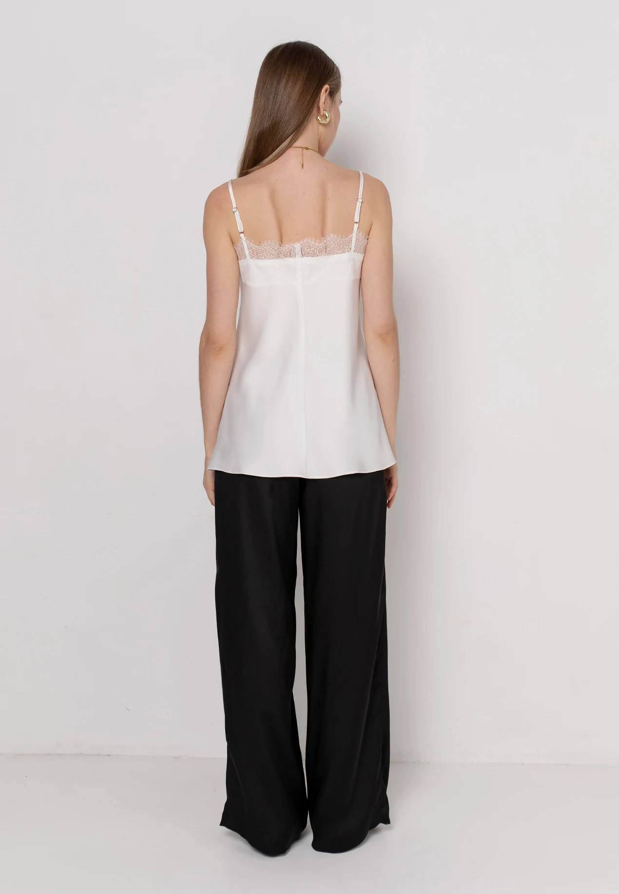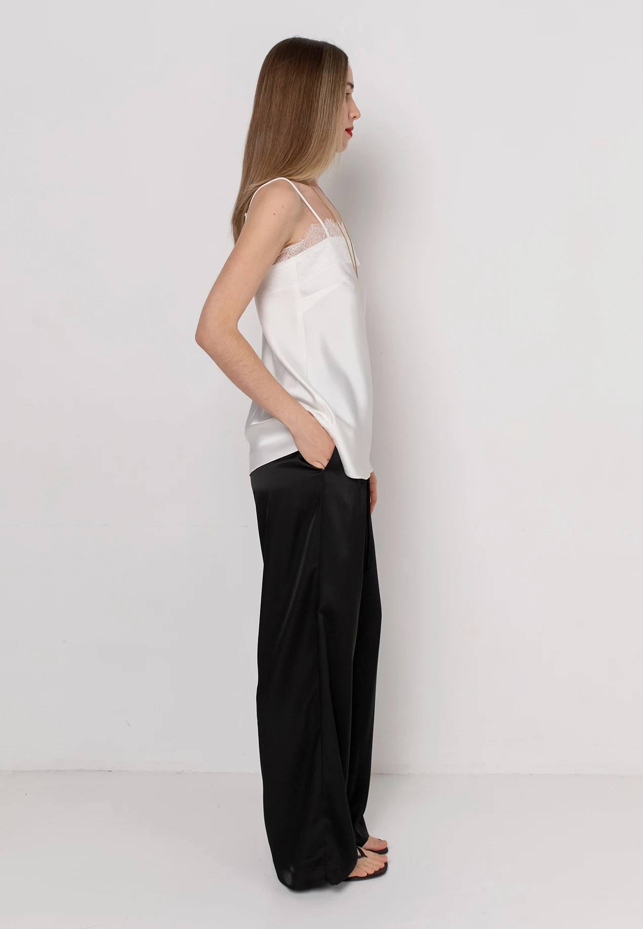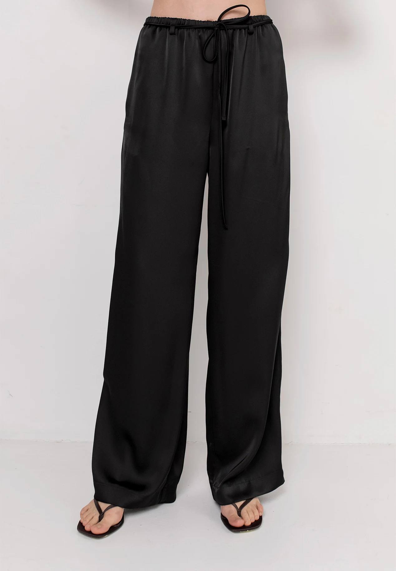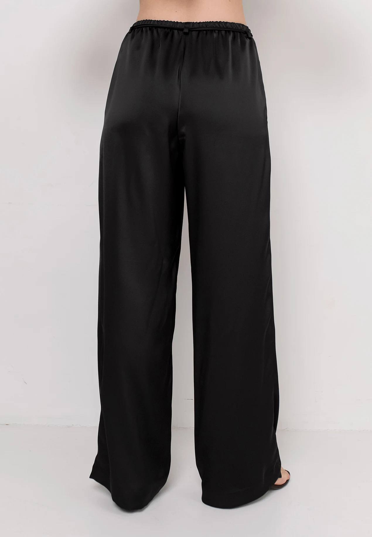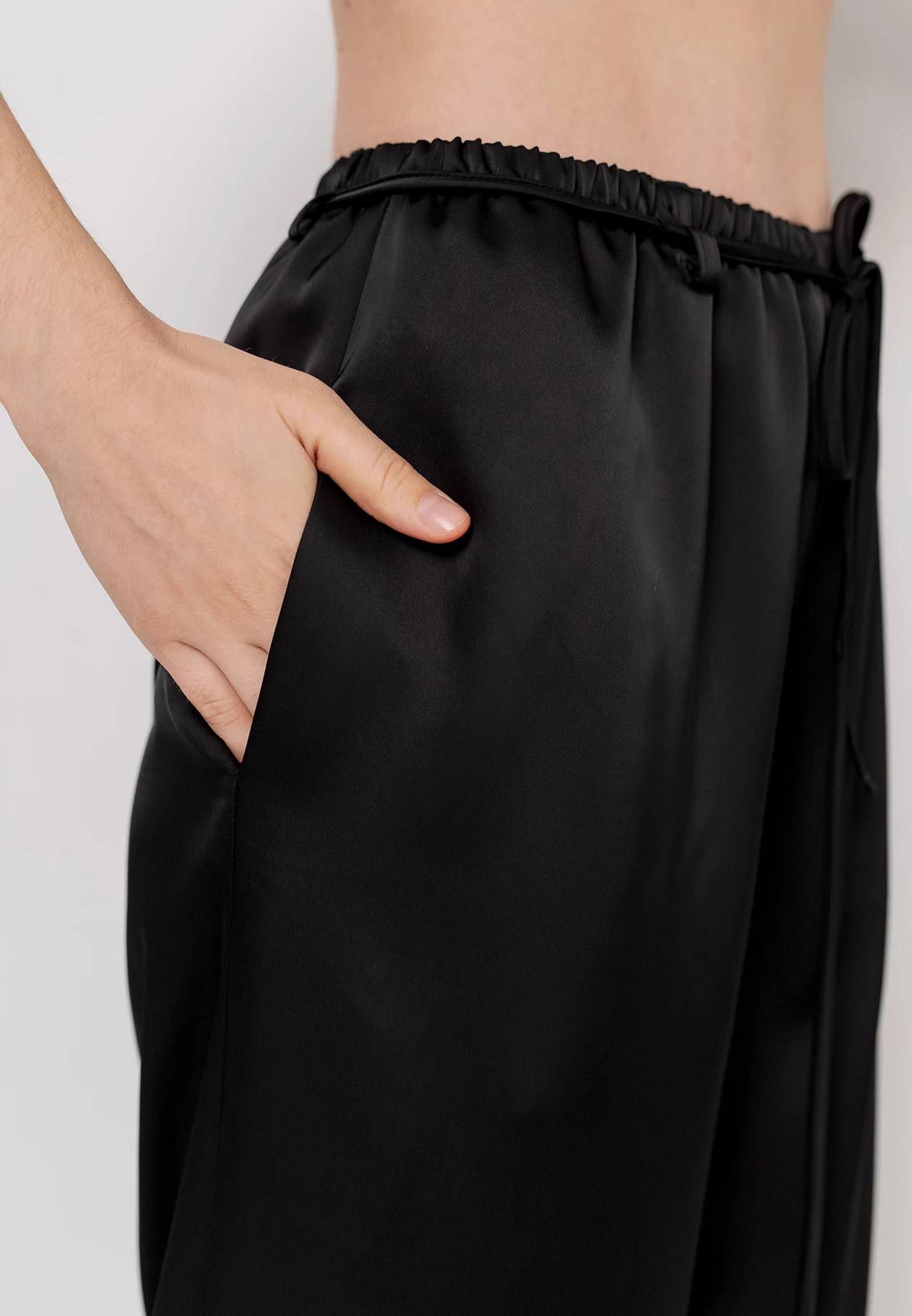 Black satin pants Stylish feminine pants are made from high-quality, comfortable and pleasant to the touch Armani silk satin without lining. Classic evening model features pockets and an elastic band with a tie.