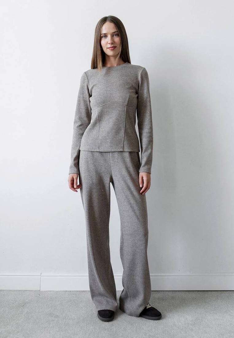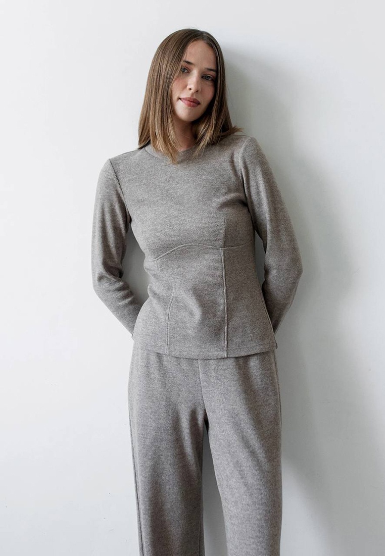 Gray-beige knit longsleeve-top Warm suit longsleeve is stylishly created from ribbed wool knitwear. The everyday basic model is made with classic long sleeves.