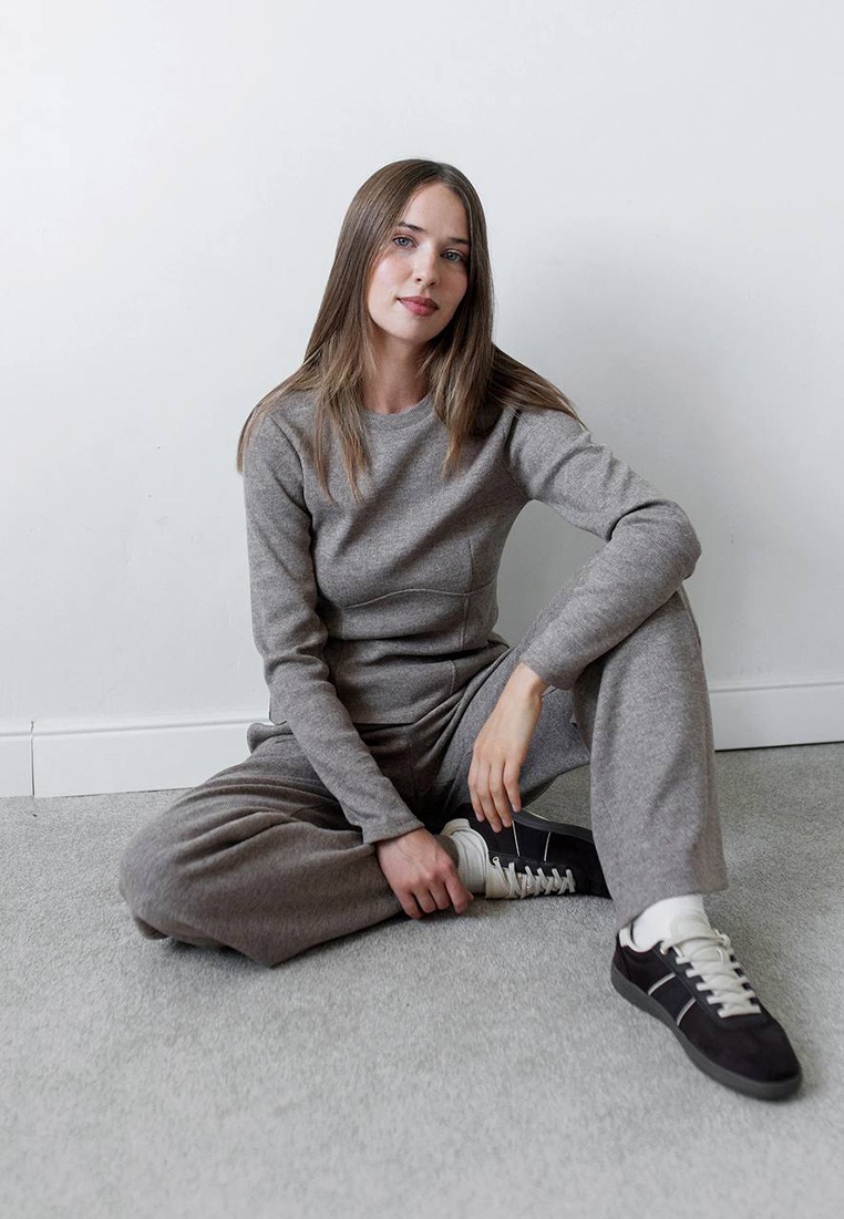 02 Fabric: warm ribbed knitwear | color gray-beige